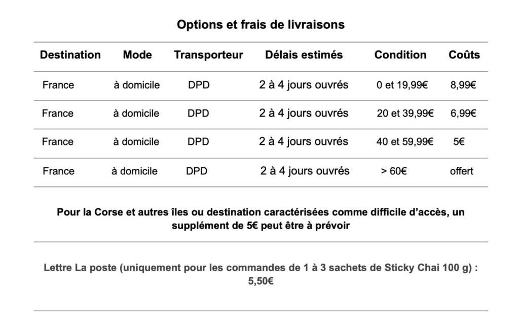 Les frais de livraison sont offerts à partir de 60€ d’achat.