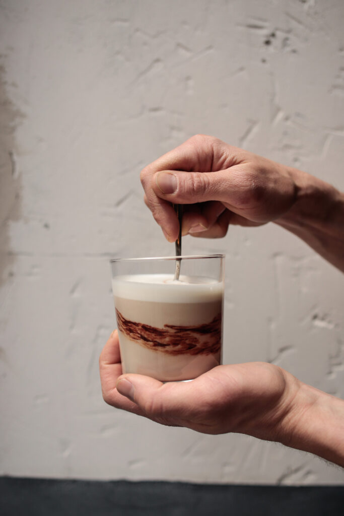 Chaud : Mélangez vigoureusement jusqu’à obtenir un latte homogène.