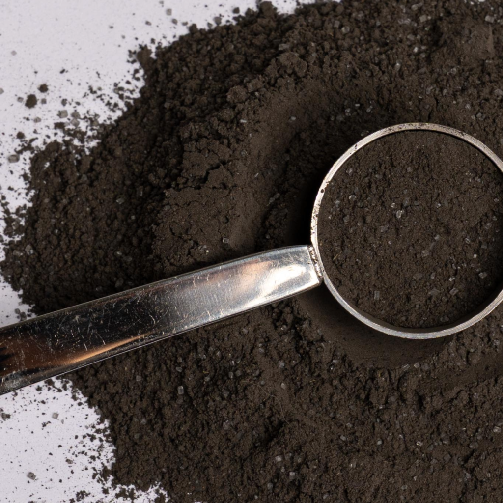 Ingrédients : Sucre de betterave non raffiné (FR), cacao cru (Criollo), cannelle, charbon végétal actif, thé hojicha, poivre noir, gingembre.