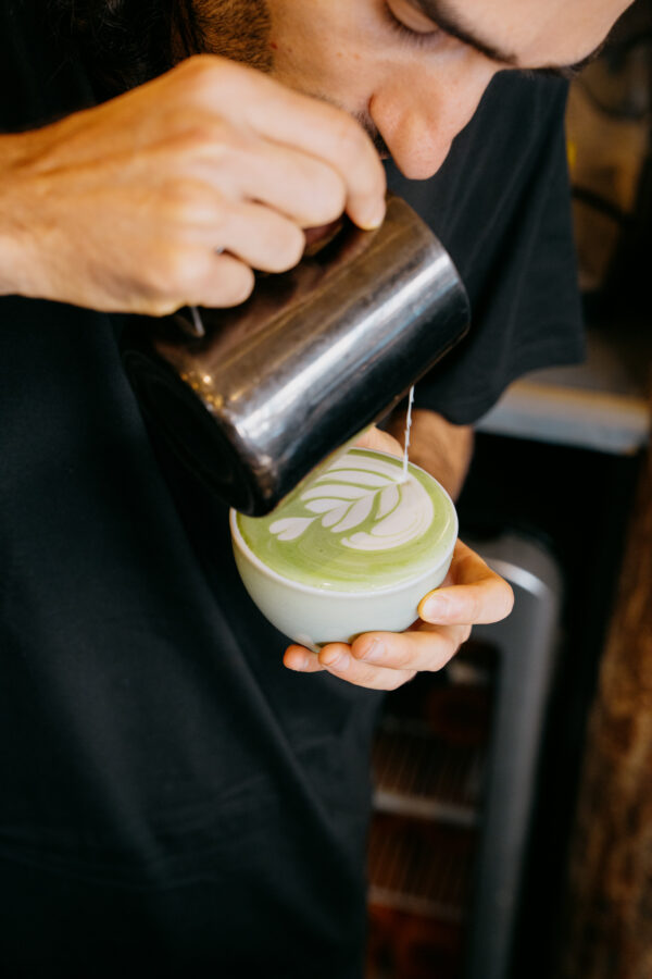 Résultat : un latte d’un vert profond, aux notes herbacées puissantes, contenant seulement 3 % de sucre par tasse. En fin de bouche, une touche de gingembre vient subtilement réveiller le palais.