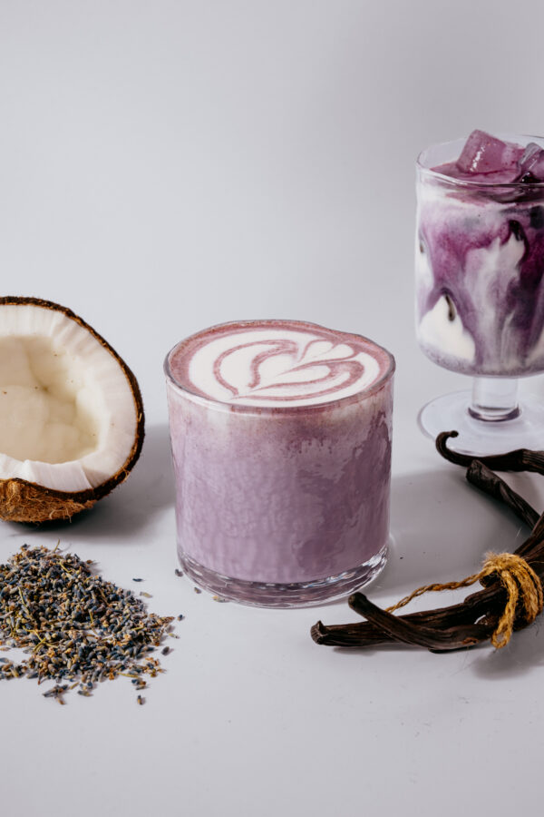 Le Lavender latte séduit par sa teinte violette pastel et son profil aromatique délicat. Il associe la douceur florale de la lavande à l’onctuosité de la noix de coco, relevée par des notes subtiles de vanille.