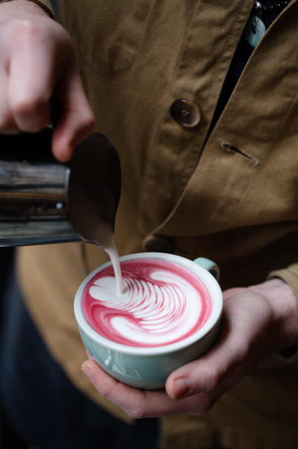 Découvrez la Pink Paste, notre création pensée pour réaliser de superbes pink lattes. Ce mélange 100% naturel associe betterave confite, cacao cru et cardamome verte. Il donne naissance à une boisson aussi étonnante par sa couleur rose vive que par son profil aromatique, où la douceur de la betterave rencontre la profondeur du cacao.