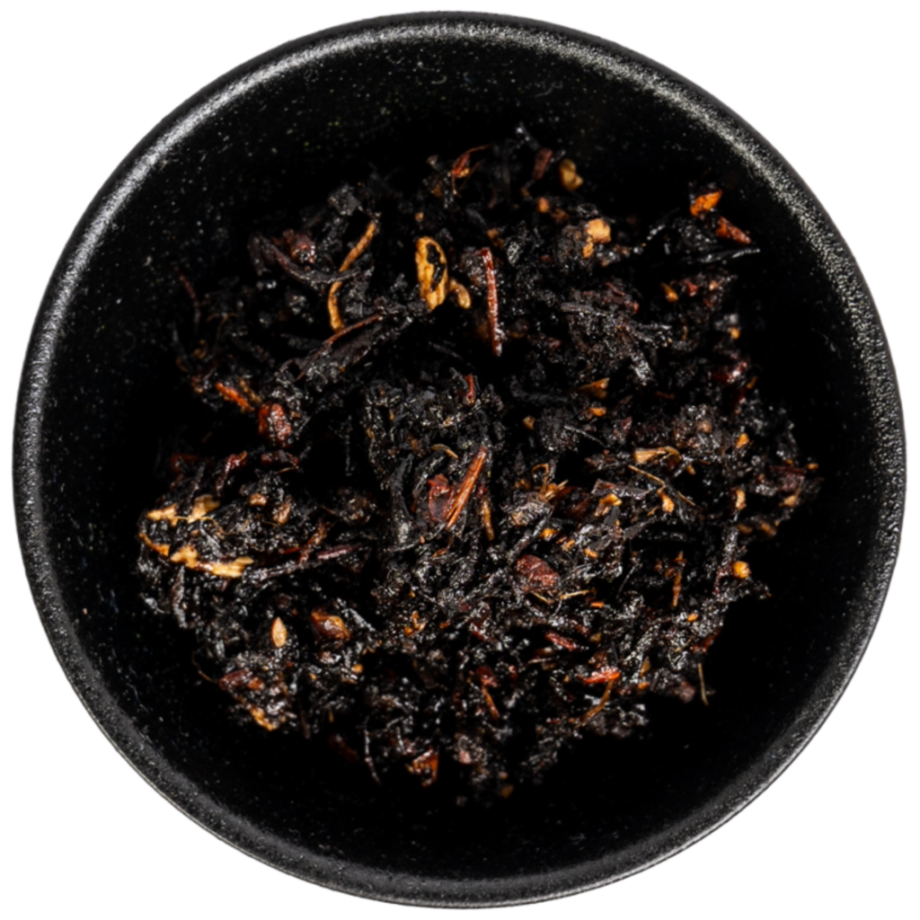 Le thé noir apporte structure, intensité et énergie douce. Les épices, elles, ajoutent profondeur et complexité aromatique. Ensemble, elles créent une base équilibrée, à la fois tonique et chaleureuse.